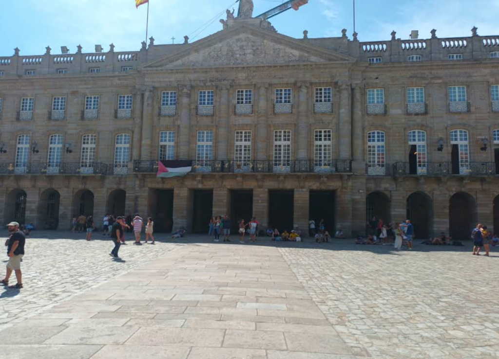 Bandera palestina en la sede del ayuntamiento de Santiago de Compostela
