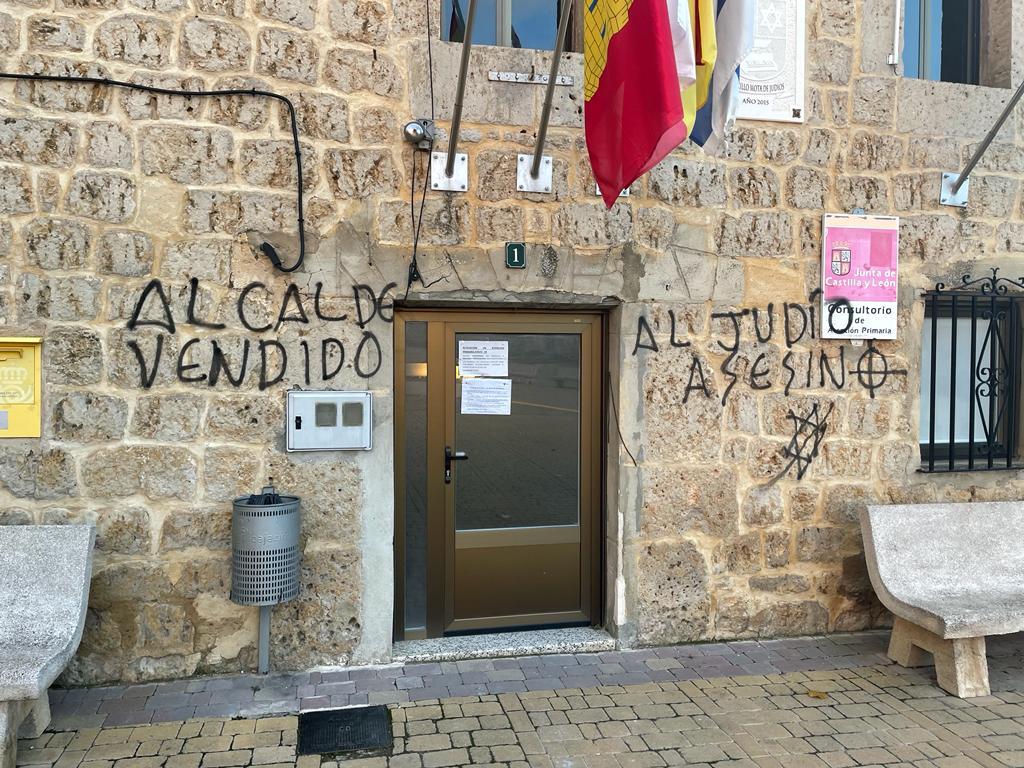Las pintadas han aparecido en la sede del Ayuntamiento de Castrillo, la señal de la carretera y el el emplazamiento donde se edificará el centro de la Memoria Sefardí.