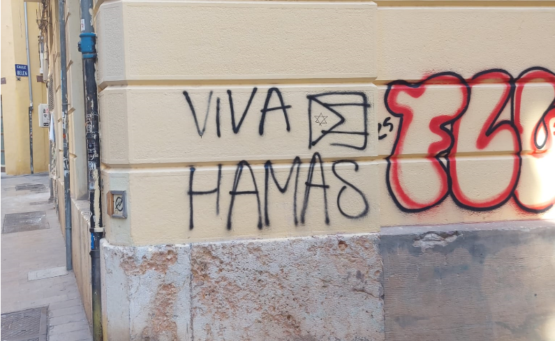 Pintada «Viva Hamas» y una bandera con una Estrella de David en un lateral.
