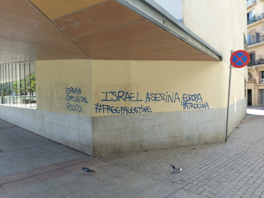 El día 17 de septiembre un colegio público de una localidad de la provincia de Alicante al que acuden alumnos judíos, apareció con la pintada Estrella de David = Esvástica y Estado de Israel = nazis del S.XXI
