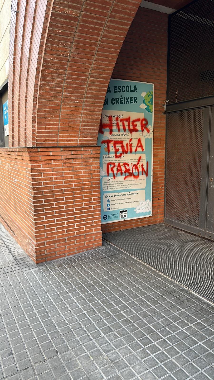 Pintada aparecida el 12 de noviembre en una escuela pública de Barcelona donde varias familias israelíes llevan a sus hijos.