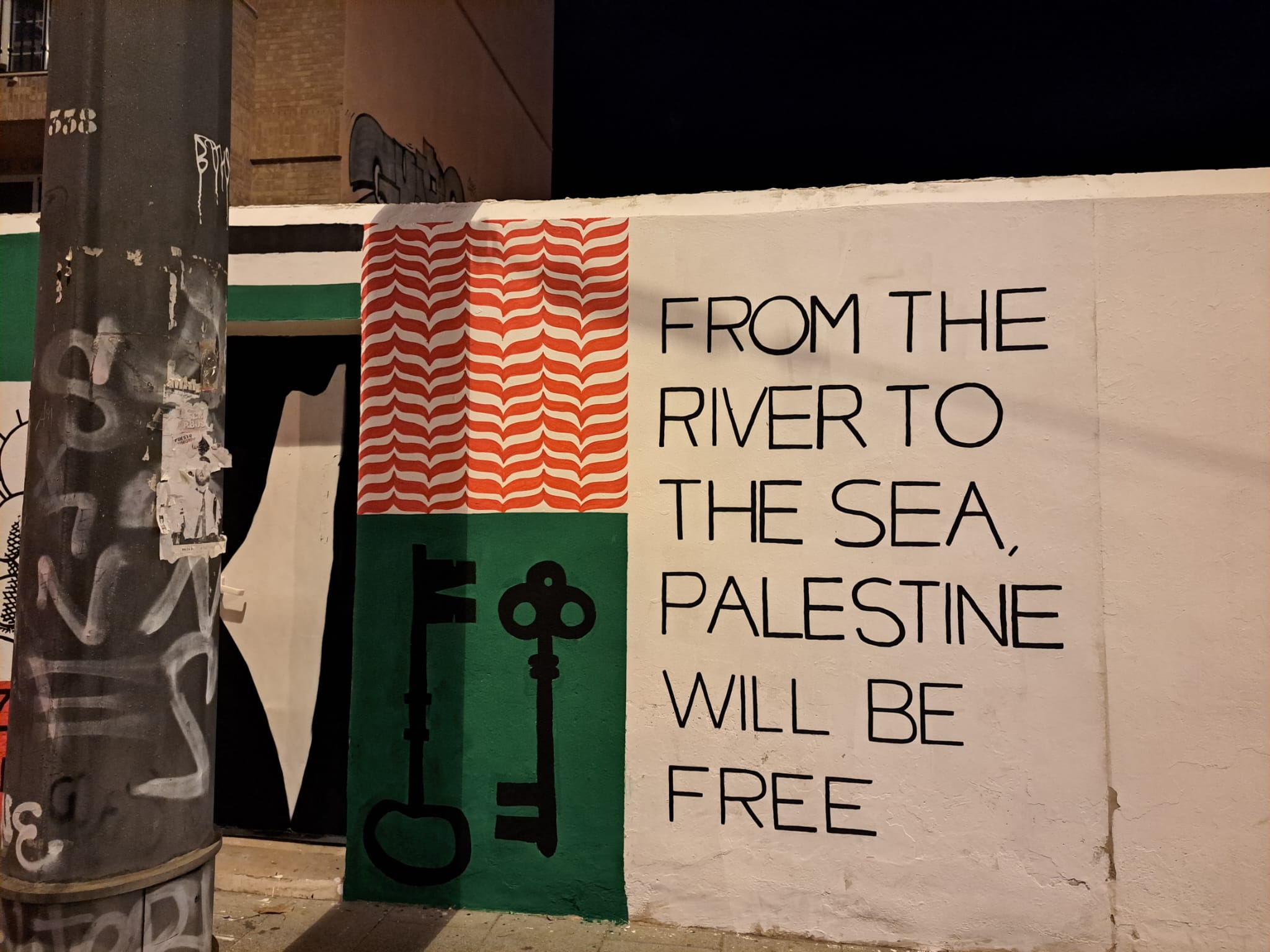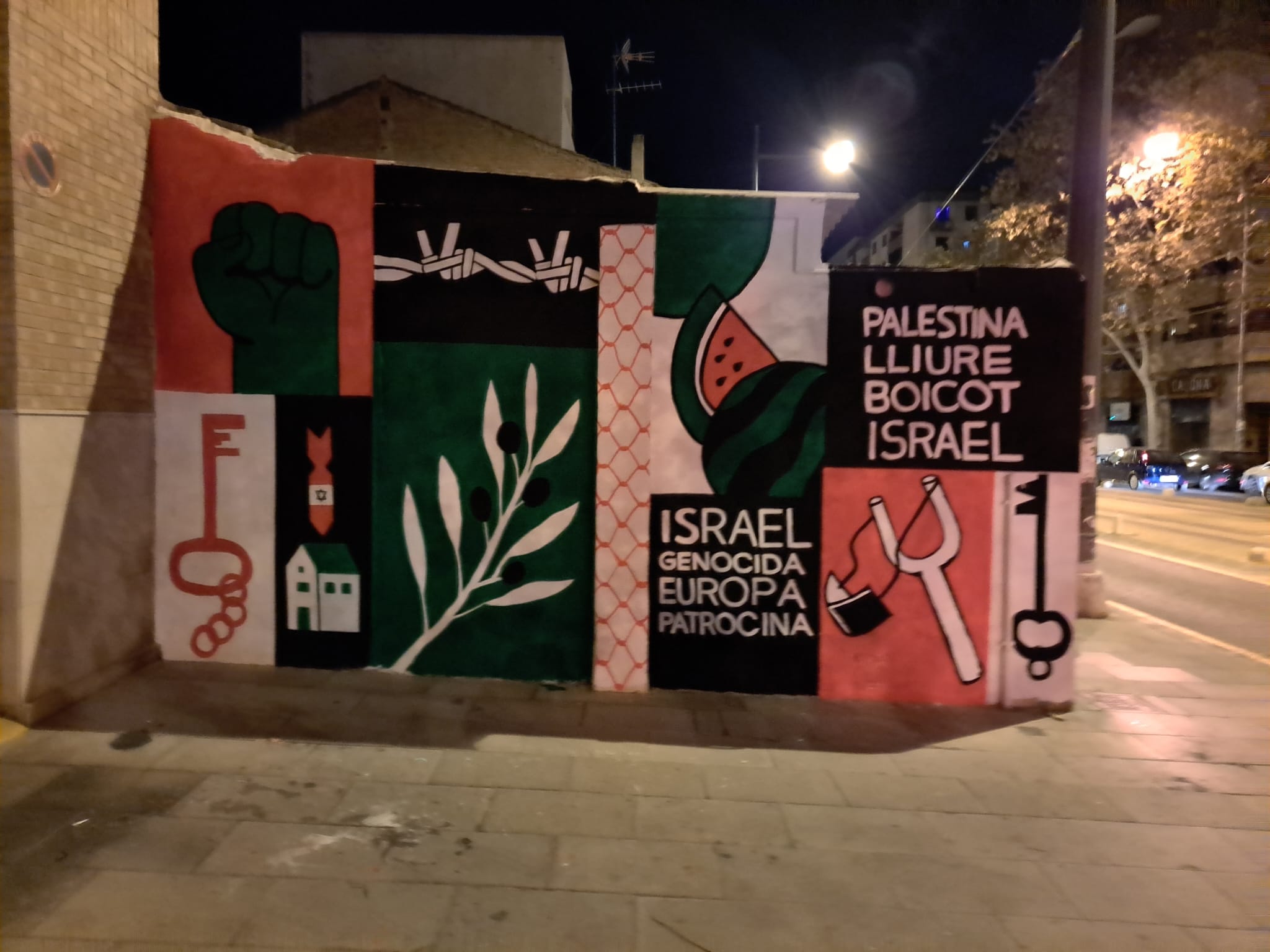 Pintadas llamando genocida a Israel, pidiendo su boicot y su desaparición (Del rio al mar, Palestina será libre)