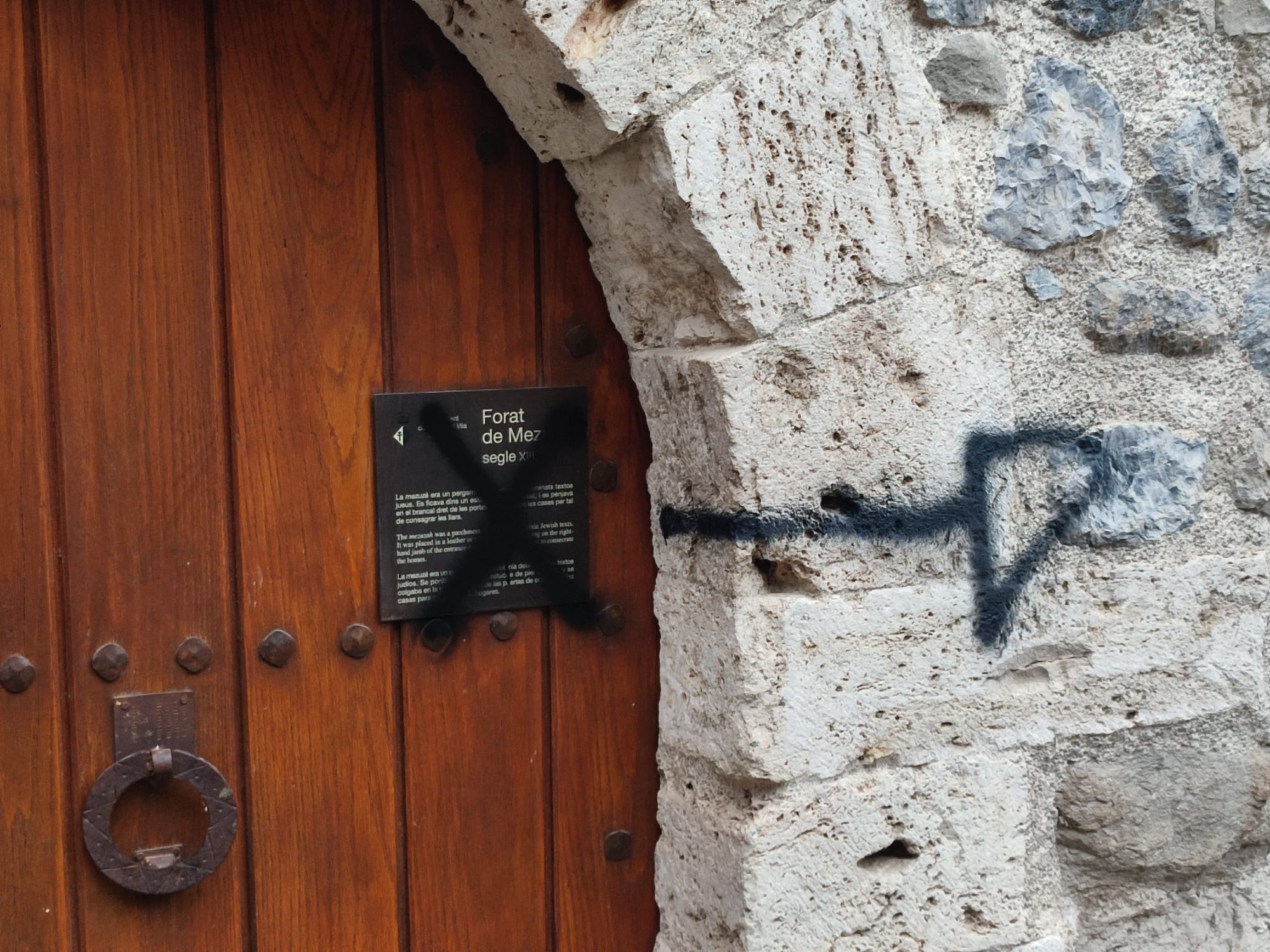 El call jueu, la judería de la ciudad medieval de Besalú (Girona) del S.XIII y patrimonio cultural, que alberga un importante legado judío, apareció con varias pintadas el martes 17 de octubre en pleno conflicto entre Israel y la organización terrorista Hamás.