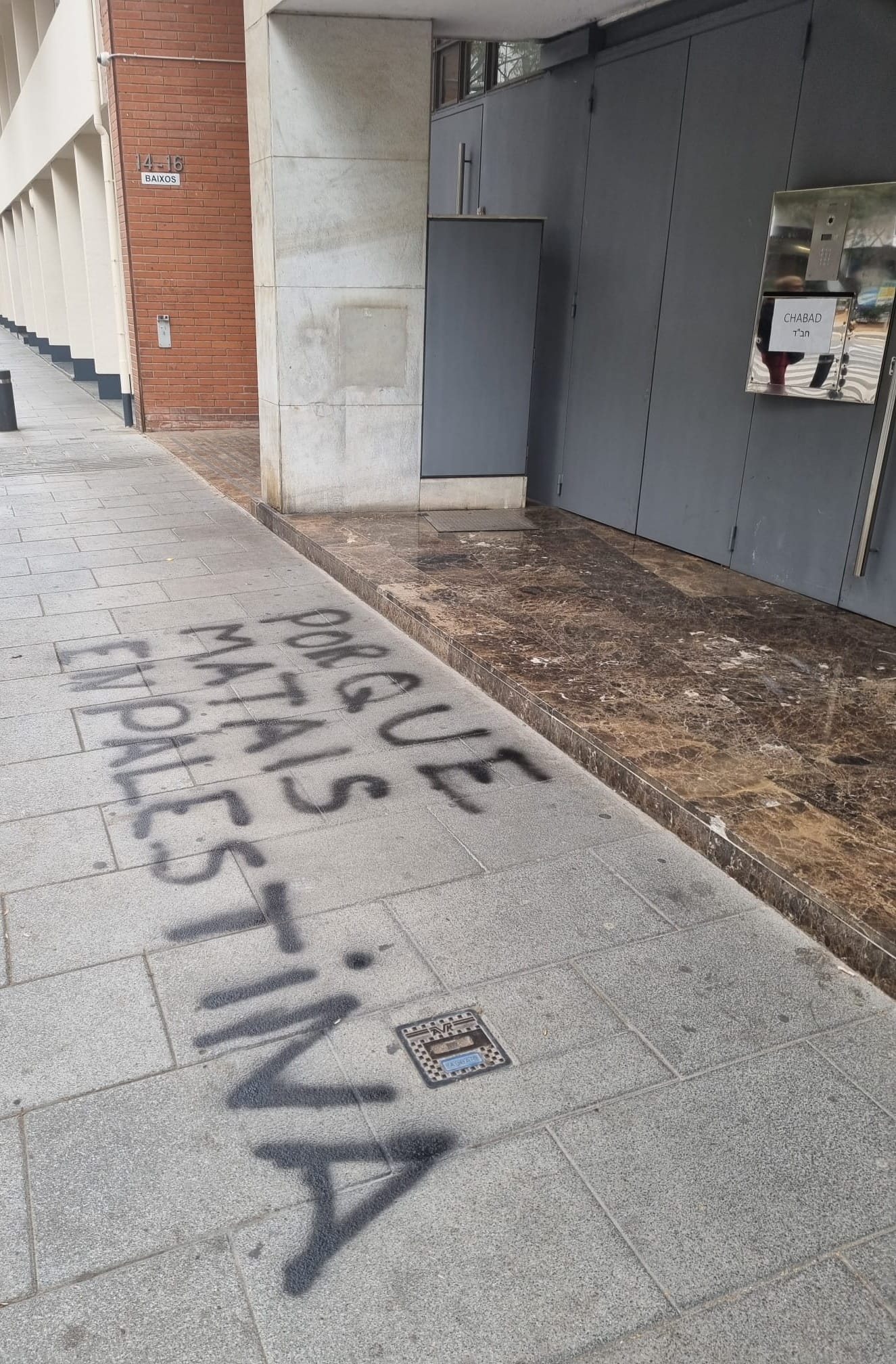 «Free Palestine» en puerta de sinagoga en Madrid tras los atentados de Hamás