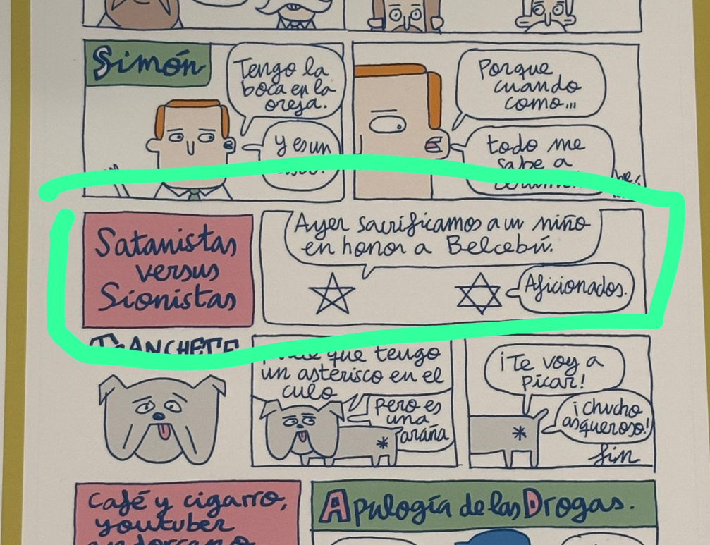 Página de un cómic en una exposición del Instituto Valenciano de Arte Moderno (IVAM). Antisemitismo, antisemitismo en españa