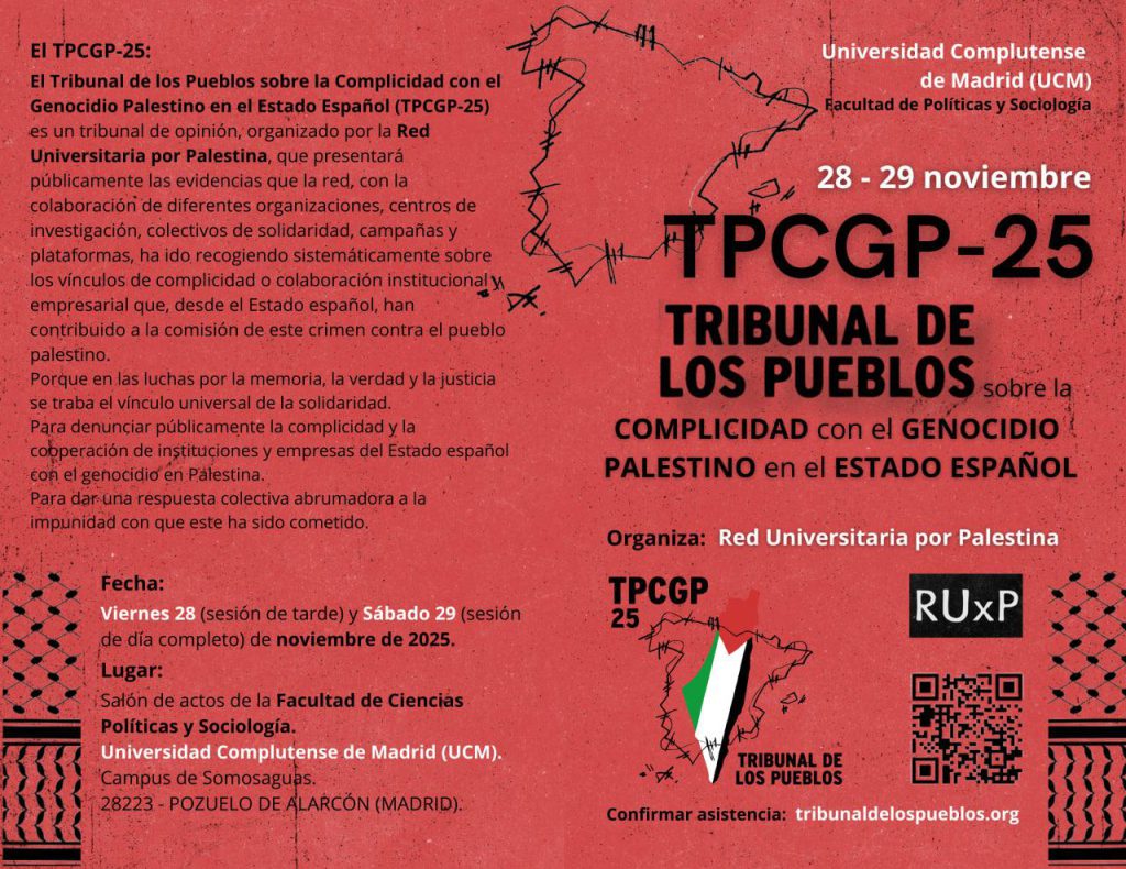 La Facultad de Políticas y Sociología de la Universidad Complutense de Madrid ha autorizado un evento de la Red Universitaria por Palestina en el que se juzga como cómplices del «genocidio en Palestina» a entidades de lucha contra el antisemitismo en España, entre ellas, la Federación de Comunidades Judías de España y el Movimiento contra la Intolerancia.