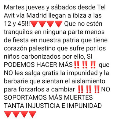 Un grupo de personas se manifestó con carteles en el aeropuerto de Ibiza contra la llegada de un vuelo con turistas israelíes procedente de Tel Aviv. La «campaña» se difundió a través de redes sociales: