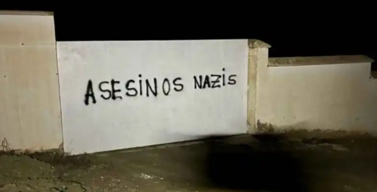 Pintada «asesinos nazis» en el muro del cementerio judío de Málaga. antisemitismo en españa, Pintadas Antisemitas