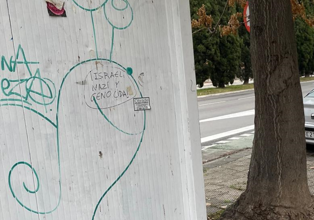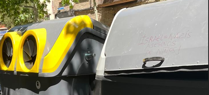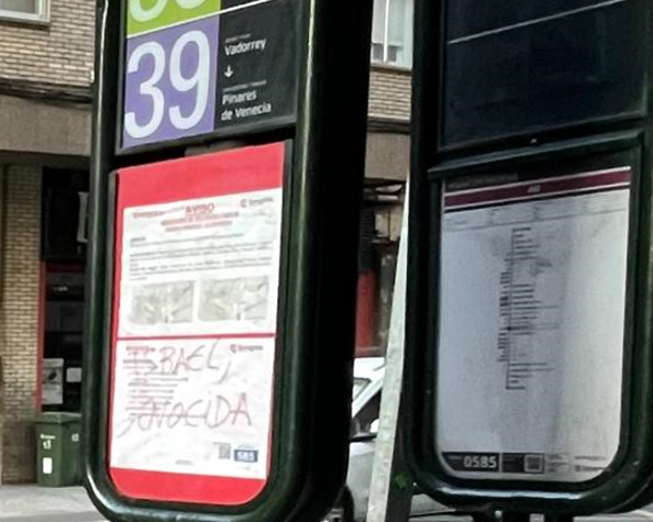 Pintadas aparecidas en varias zonas de Zaragoza (barrio de Las Fuentes, en las calles Compromiso de Caspe, Camino de las Torres y calles paralelas): «Israel nazi y genocida», «Israel, nazis, asesino de niños».