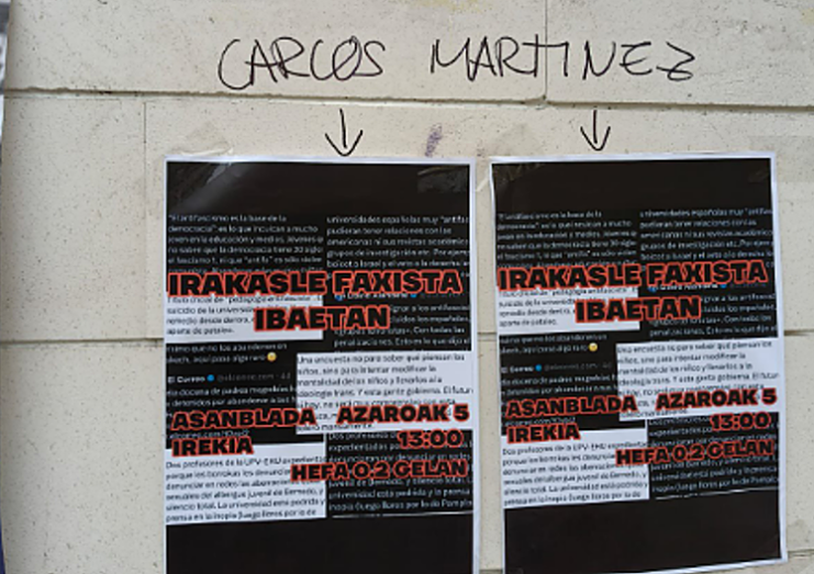 Un profesor de la Universidad de San Sebastián denuncia en sus redes sociales carteles señalándole.