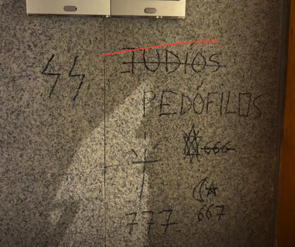 Pintada «judíos pedófilos» muy cerca de la sede de Jabad Luvavitch en Madrid y simbología demonizadora.
