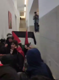Un grupo de unas 40 personas irrumpieron en la Facultad e intentaron entrar en la sala de conferencias lo que obligó a la Decana de la Facultad a activar los servicios ve seguridad y pedir la intervención del grupo de antidisturbios de la Policía Nacional.