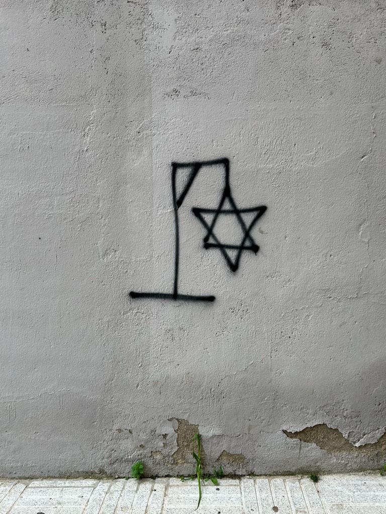 Pintada con la leyenda «perro judío» ante la casa de una persona israelí en una localidad cercana a Barcelona.