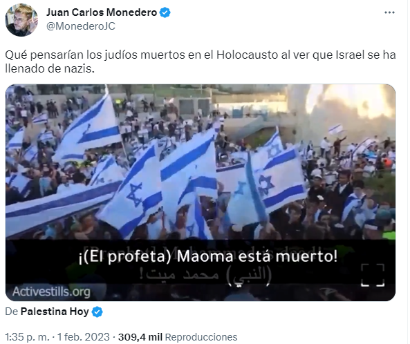 El mensaje del fundador e ideólogo de Podemos alienta otras expresiones y comportamientos de odio hacia el colectivo judío: