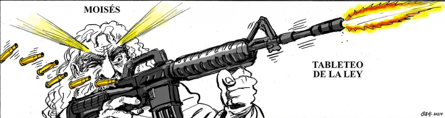El diario El Mundo representa a Moisés, el profeta más importante del Judaísmo, líder espiritual del pueblo judío, como un guerrillero que dispara con un arma moderna hacia la ley. antisemitismo en los medios de comunicación